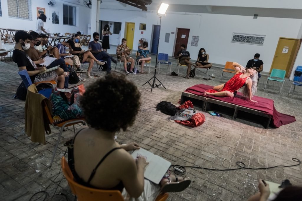 Fotos [ARTES VISUAIS] COM FIGURA – Sessão de desenho com modelo, com Silvia Moura, Flávia Rodrigues e Daniel Chastinet | Fotos: Yuri Juatama |